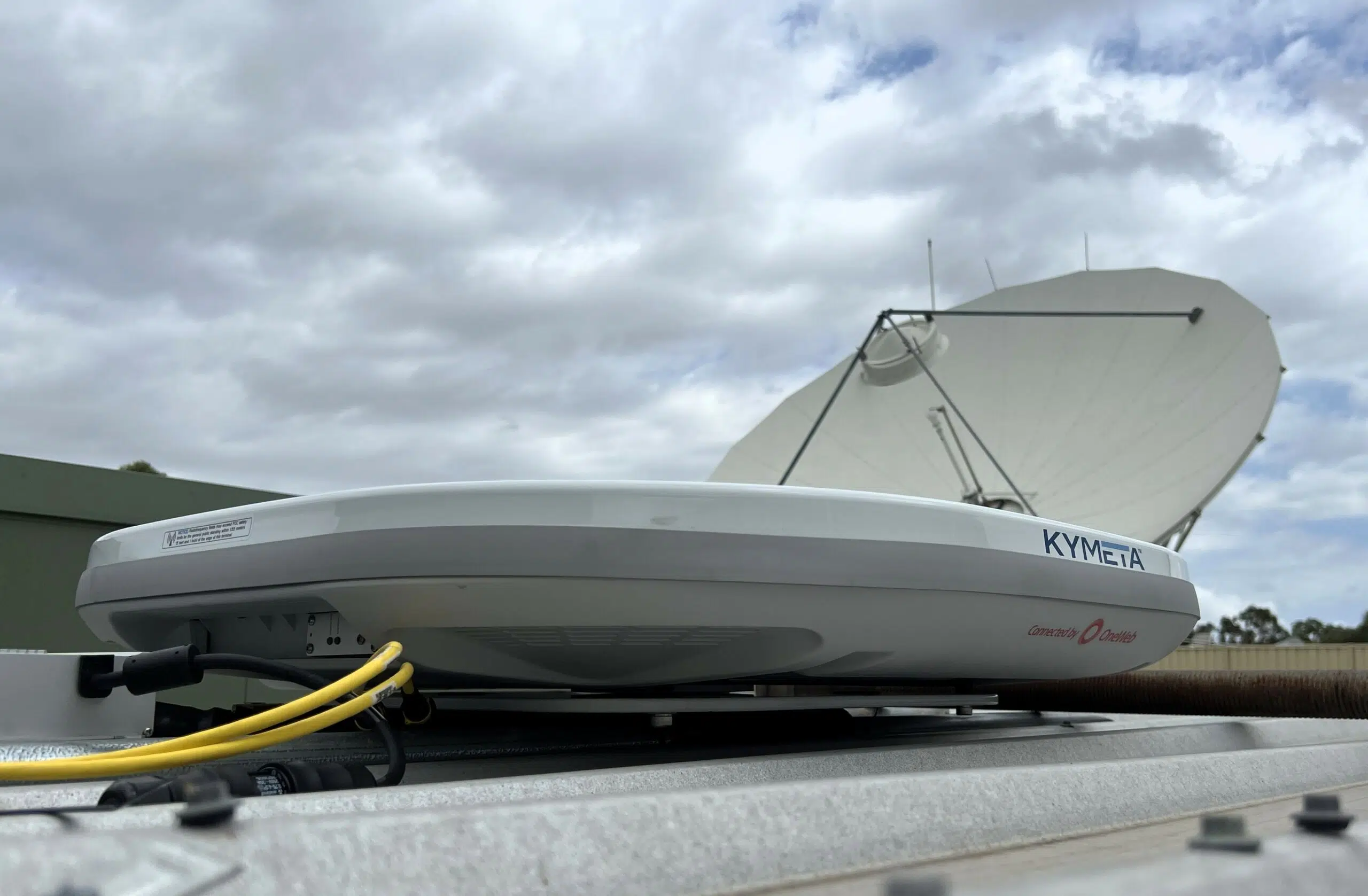 At the Speedcast Perth teleport facility, the newly-installed Kymeta u8 peregrine flat panel antenna system provided by Eutelsat OneWeb was ready for technical testing and customer demonstrations.